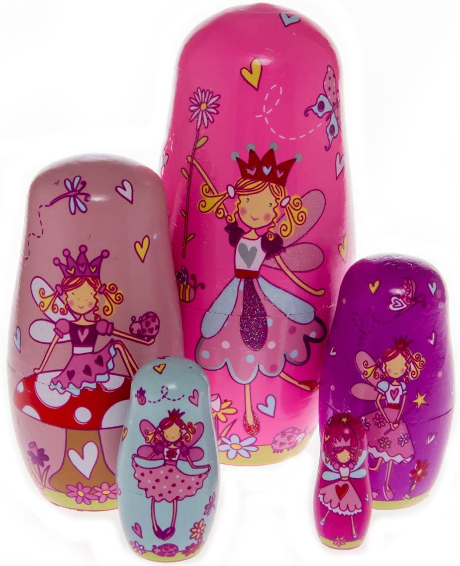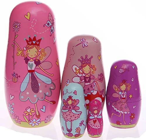 Moonmo 5pcs Beautiful Handmade Wooden Russia Nesting Dolls Gift Russian Nesting Wishing Dolls Angel Matryoshka Traditional