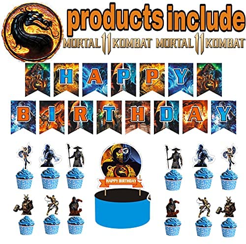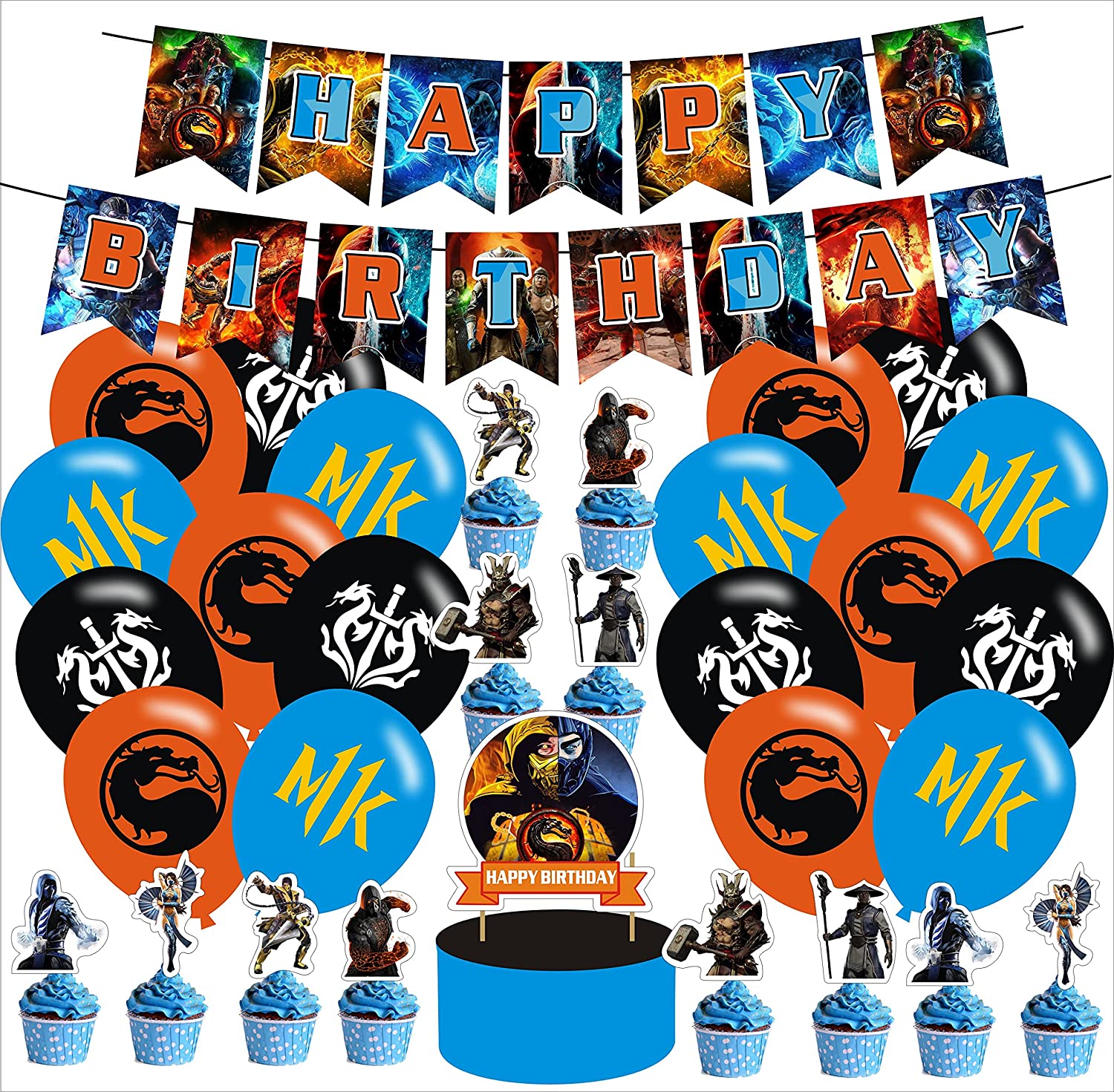 Mortal Kombat Party Supplies for Birthday Party Mortal Kombat Theme Happy Birthday Banner Cake Topper Gaming Latex Balloons for Mortal Kombat Party Favors Boys and girls Gamer Birthday Party Decorations