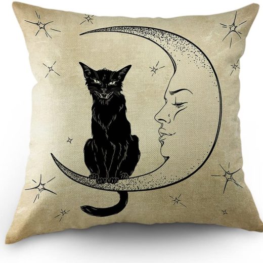 Be the first to review “Moslion Cats Moon Throw Pillow Cover Pillow Case Black Cat Sits on The Moon Face Star Cotton Linen Pillow Case 18 x 18 Inch Cushion Cover for Sofa Living Room Light Brown” Cancel reply