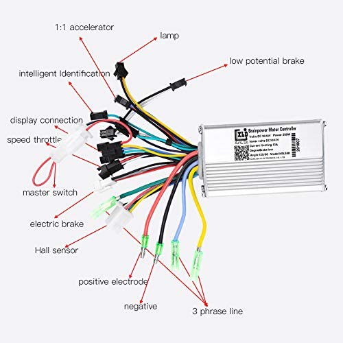 Features: PREMIUM MATERIAL: This display adopts good quality materials, lightweight, rainproof, sturdy and durable. LCD backlight display can clearly show the state and data. PROTECT CIRCUIT: The controller shell is made of high quality metal with groove design, which can protect the inner circuit due to good heat dissipation feature to avoid thermal overloading. SENSITIVE CONTROL: The brushless motor controller can provide steady speed and sensitive control of braking and direction changes. WIDE APPLICATION: This electric bicycle brushless motor controller is suitable for electric bicycles, cars, scooters. FUNCTIONAL: Can set the power-on password, control the lights, cruise and boost. The vehicle speed is divided into gears, the number of gear positions is 3/5/9 gears optional, and turn the handle can be selected to be divided into gears or not. Specification: Material: Plastic + LCD + Metal Color: Shown as picture Options: 1#24V-36V; 2#36V-48V Power: 1#24V-36V: 250W; 2#36V-48V: 350W Low-voltage Protection: 1#24V-36V: 19V/30V; 2#36V-48V: 30V-41V Waterproof: Rainproof Controller Size: Approx. 8.8 x 5.2 x 3cm / 3.46 x 2.04 x 1.18inch Display Size: Approx. 8 x 5cm / 3.15 x 1.97inch Weight: Approx. 332g Package List: 1 x LCD Display 1 x Controller 1 x Mount Note: Each cable is labeled with color for different uses. Red: power positive electrode Black: power negative electrode Yellow: power output Brown: lamp positive electrode White: lamp negative electrode Blue: indicator signal Green: signal receive