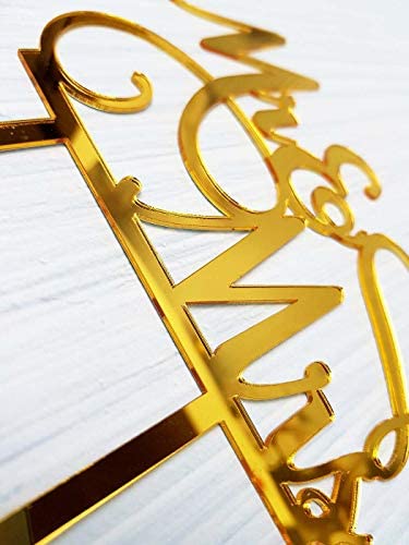 Mr and Mrs Cake Topper, Bride and Groom Sign Wedding / Engagement Cake Toppers Decoration, Mirror Gold Acrylic.