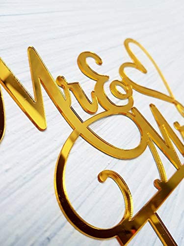 Mr and Mrs Cake Topper, Bride and Groom Sign Wedding/Engagement Cake Toppers Decoration, Mirror Gold Acrylic