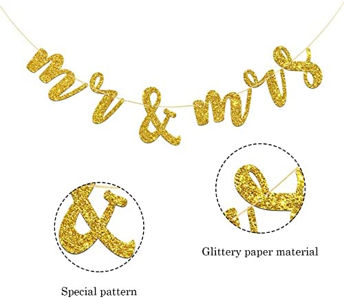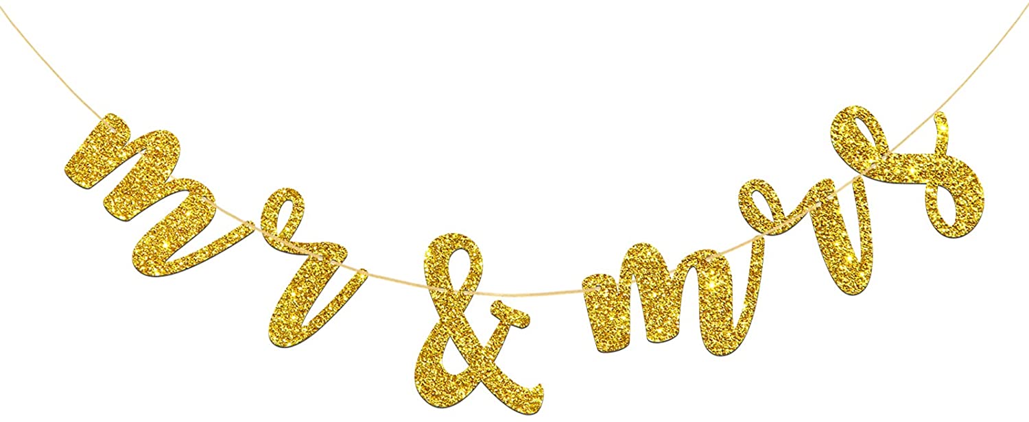 MR & MRS Banner for Bridal Shower, Engaged, We Still Do, Wedding Party Decorations (Gold Glitter)