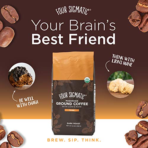 Mushroom Ground Coffee, Organic And Fair Trade Coffee With Lions Mane, 12 Oz & Chai Latte, Organic Instant Chai Latte With Turkey Tail, Reishi Mushrooms & Coconut Milk Powder, 10 Count
