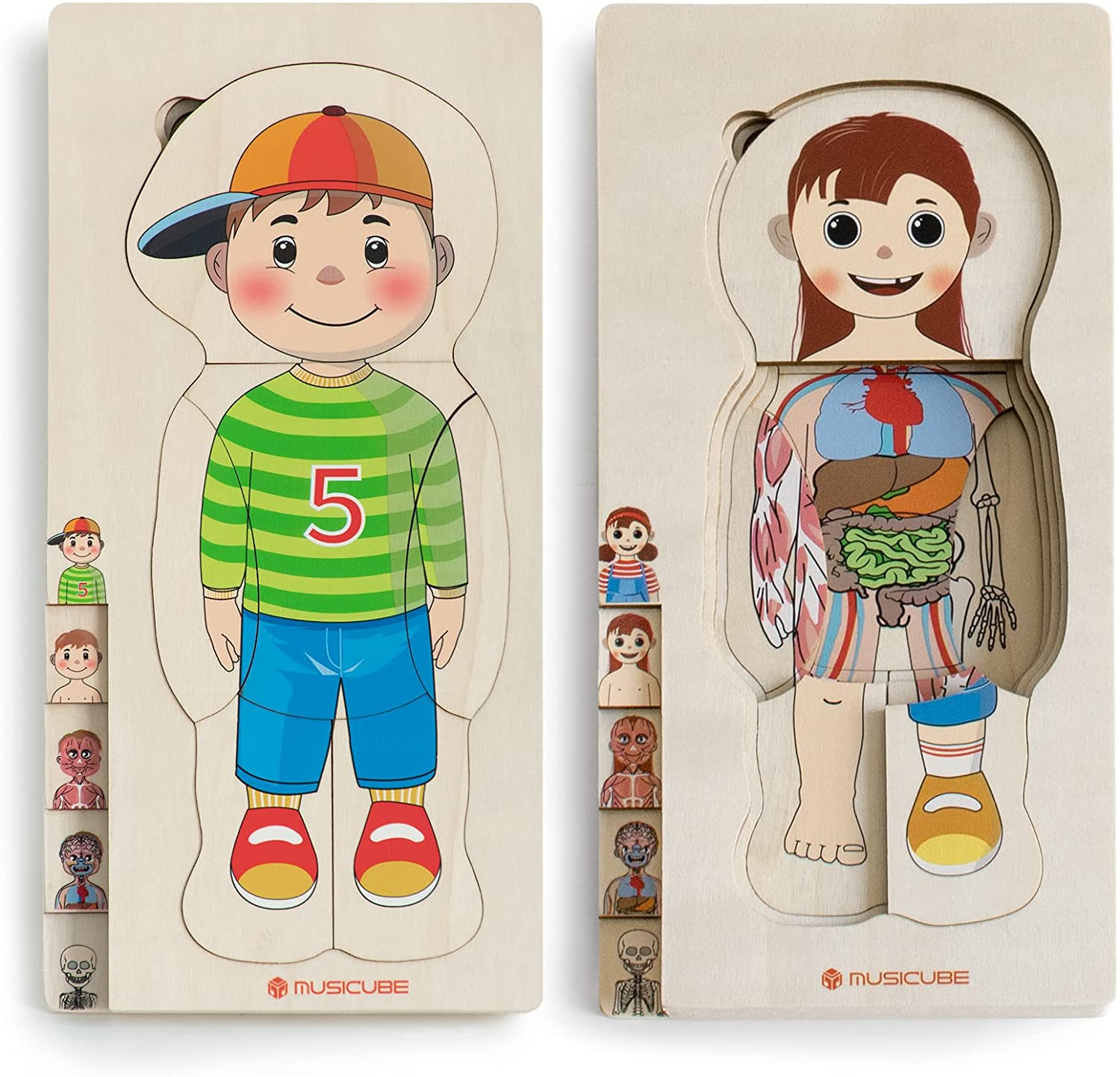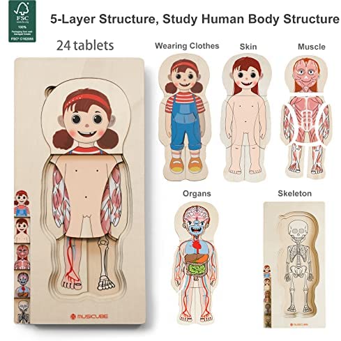 MUSICUBE Body Puzzle for Kids 48 Pcs Anatomy Puzzle Toys for Boys Girls Educational 2 in 1 Wooden Puzzle Set Toys Montessori Toys Gift Choice for Toddler Aged 3+ (2 Pack Included)