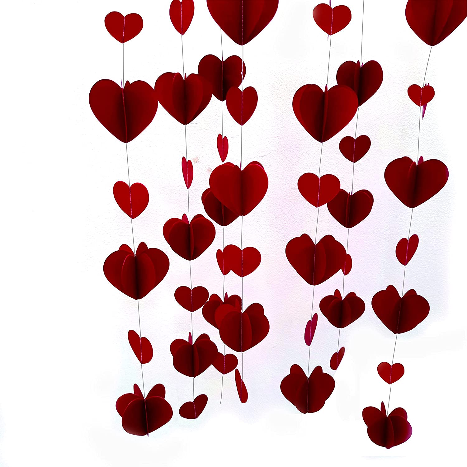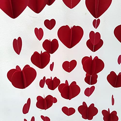 Mybbshower Valentines Day Decorations 20ft 3d Red Heart Paper Garland party backdrop Wedding Banner Bridal Shower Photo Prop Decor