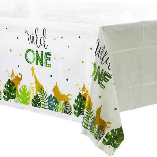 NAIWOXI Wild One Tablecloth – 4Pack Jungle Themed Table Cover, for Wild Party Supplies, Safari Birthday Decorations, Animal Themed Baby Shower Birthday Table Cloth Decorations(54in x 108in)