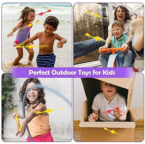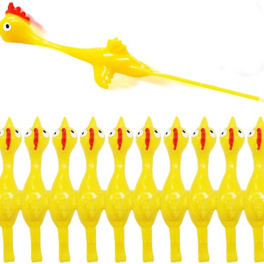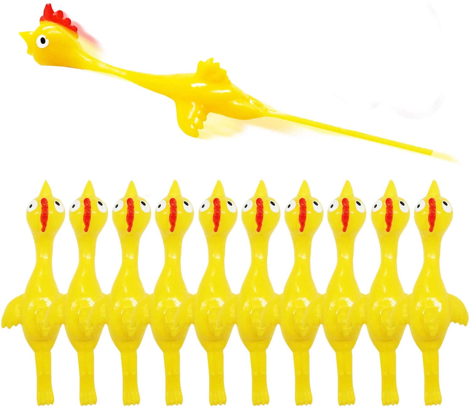 ORIGINAL ONLY BY Namii WRubber Chicken Slingshot by Namii W provided for you: Pack of 10 rubber chicken slingshots funny gag toys + 1 pack of grow beads (for free). Share with your friends the funny outdoor games! HOW TO PLAY RUBBER CHICKEN SLINGSHOTS–Place the index finger in the hole under the chickens head and pull their tail with the other hand. Aim and shot the target. Namii W Rubber Chicken Slingshot can shoot pretty far ! Its a very interesting process seeing slingshot chickens flying in the office, kitchen or outdoor yard .They stick on wall ,ceiling even your friends back then fall off slowly. Perfect outdoor games and party favor for kids and teens. FUNNY GIFTS FOR KIDS–Made of Kid-friendly TPR material,a kind of quality stretchy rubber.Perfect Easter gifts for children and teens. Each Namii W slingshot chicken is about 10.8cm/4.3inch long. The maximum length you pull can exceed 60cm/23.6inch. Excellent flexibility, NOT EASY TO BREAK. EASY TO WASH –When slingshot chickens get dirty, you can wash them with soap and water. And soon the chicken bodies are cleaned. You can either play slingshot chicken indoor or outdoor games without fear of getting dirty. Namii W slingshot chicken are environmentally friendly toys that you can clean for many times. LITTLE TIPS FOR YOU–Please do not aim the rubber chicken slingshot at vulnerable parts of the body (such as the eyes)to get injury.Suitable for children over 12 years old.