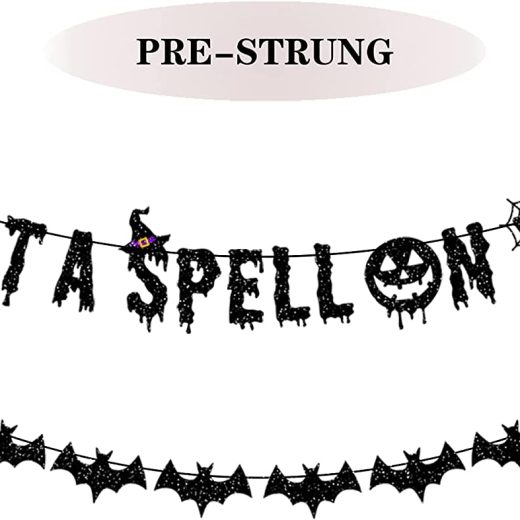 Package included:: 1 x Black Glitter I Put A Spell On You Banner 1 x Black Glitter Halloween Scary Bats Banner High Quality: NO DIY REQUIRED.Glitte…