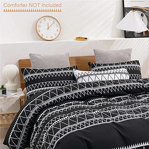 SUPERB MATERIAL-Slip into comfort and luxury! This Black Boho Geometry duvet cover set is made from 100% premium brushed Microfiber. It gives you the ultimate soft feel at a great value and keeps you comfortable all through the night. Our duvet cover is luxurious, stylish, and the softest duvet cover youll ever own. Queen Size: 1 duvet cover (90×90 inches), 2 pillow cases (20×26 inches).Without comforter. ORIGINAL DESIGN PRODUCTS- We offer you this stylish, elegant and high-quality duvet cover because we want you to have a special bedroom and home environment. Designed with excellence in mind, its a good gift choice for families and friends. Delicate nifty cover can brightens up the bed. ZIPPER CLOSURE & CORNER TIES- The invisible side zipper easily allows you to insert and remove your duvet when needed. The four corner ties/hooks ensure that your comforter remains immovable in the cover. MACHINE WASHABLE -Ordinary washers and dryers can be used for easy care and washing of this set. Hand or machine wash in cold water with mild detergent is recommended. WHAT YOU CAN GET: Available in Black Boho Duvet Cover Set Queen Size 90 x 90, 2 Pillow Shams 20 x 26 Please Note: when washing a duvet cover with a zipper, close the zipper completely to prevent snags and tears during laundering.