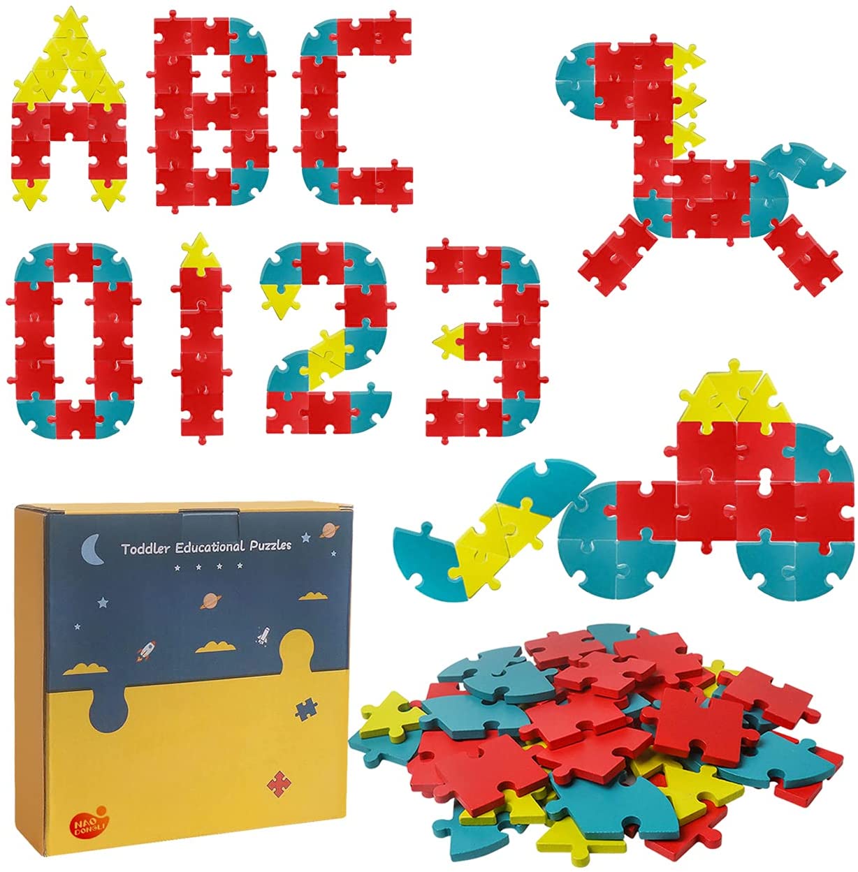 NAODONGLI Pattern Blocks Educational Toys with 40 Solid Wood Shapes,Early Learning Game Building Blocks Building Toys for Toddlers Geometric Shape Puzzle Great Gift for Kids Ages 3+
