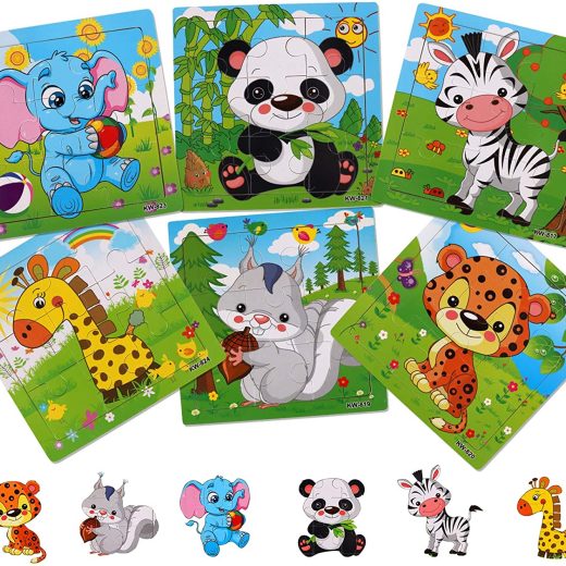 HAVING FUN: Our 9-piece puzzles make learning fun for all kids! These entertaining wooden jigsaw puzzles are a wonderful way for toddlers to develop skills while laughing and having fun. COGNITIVE DEVELOPMENT: These kids animal puzzles can help kids to develop their hand-eye coordination, problem-solving abilities, and spatial reasoning skills. Our boy and girl puzzles are a great alternative to tablets and smartphones. FUN AND COLORFUL: The set includes 6 jigsaw puzzles for kids. Let your kids have fun putting the pieces together to discover the animated elephant, panda, giraffe, squirrel, tiger, and zebra. The kid’s puzzles are fun, engaging, and great for kids between 2 and 5 years old. TOP QUALITY: The boy and girl puzzles are made from durable and safe wood. They are long-lasting and have beautiful animal prints. The round edges of the board and large jigsaw pieces prevent any unwanted accidents. LOVELY PRESENT: Get this animated puzzle set for your child or as a lovely surprise for the little ones among your family and friends. The 6 wooden puzzles are wonderful Christmas or birthday presents for kids from 2 years old.