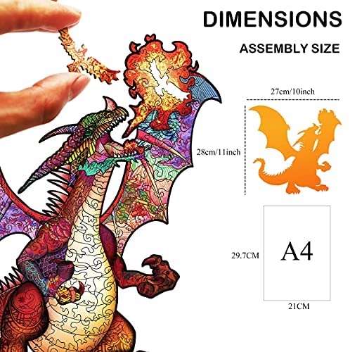 DRAGON/DINOSAUR THEMED – Enjoy a relaxing time with this fantastic Dragon/Dinosaur puzzle! Our wooden jigsaw puzzles are made up of pieces shaped l…