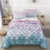 4 piece Twin bedding set: 1-Lightweight Comforter, 1-Standard Sham, 2-Window Valances Comforter (62in x 86in), Sham (20in x 26in), Valances (54in x 15in each) This bedding set combines a multicolored dinosaur print and a coordinating grey chevron prehistoric print This set is made of brushed microfiber and is machine washable This design has matching accessories such as window treatments, hampers, shower curtains and pillows
