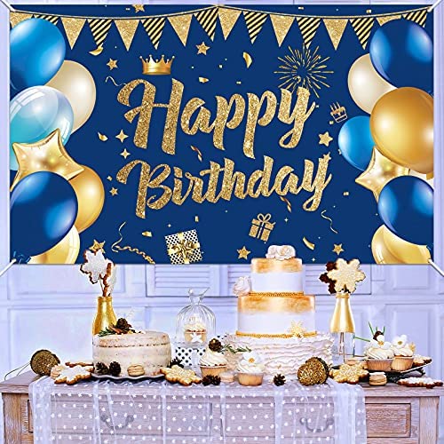 Navy Blue Birthday Party Decoration Banner, Navy Blue and Gold Happy Birthday Backdrop Banner for Men, Large Blue Birthday Banner Photography Background Party Decoration for Men Boys Women 70.8×43.3Inch