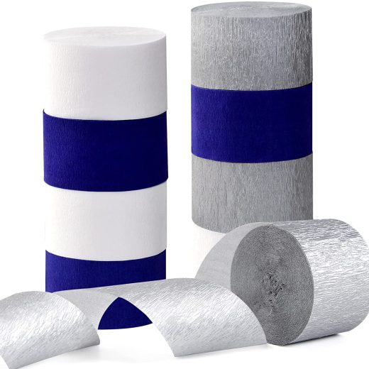 Package ContainsThe sets include 9 rolls crepe paper streamers.The size of each streamer is 1.77inch*82ft.They can be easily cut to your length you want. Bright color Our crepe paper is available in 3 colors, 3 rolls per color; navy blue white silver.There is plenty of each color to really get creative and have some fun. Widely UsedThey are perfect for graduation party decorations 2022, male blue birthday decorations,blue party decorations,party decorations for men, Fathers Day decorations, wedding ,bridal Shower,birthday decorations for men,boy birthday decorations. Resistant to fade The paper material of the streamers decorations high quality, recyclable and eco-Friendly,the color is not easy to fade,easy to make twisted streamer backdrops. 100% Satisfaction GuaranteeYou can get a full refund unconditionally if you are not satisfied with our products , do not hesitate to contact us if you have any questions.