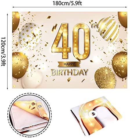 Be the first to review “NC Happy 40th Birthday Backdrop Banner 40 Years Old Bday Background Decorations for Women Men Her Him Photography Party Supplies Glitter White Gold (1)” Cancel reply