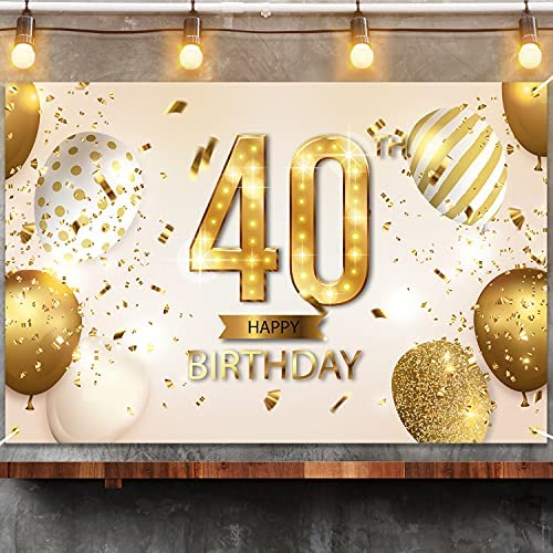 NC Happy 40th Birthday Backdrop Banner 40 Years Old Bday Background Decorations for Women Men Her Him Photography Party Supplies Glitter White Gold (1)