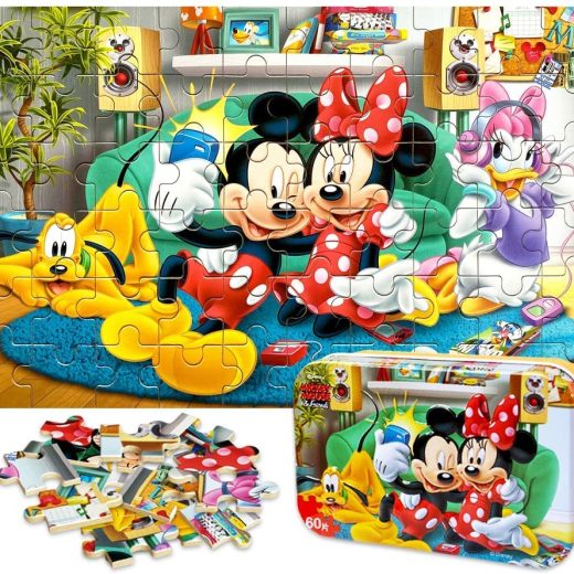 SAFE MATERIALS: Our Mickey Mouse Kids Puzzles are Made of Nontoxic and Odorless Material Which are Sturdy Enough and Do Not Tear Easily So Good for Children. The Puzzles are Well Cut So that It can Assemble Well and Every Pieces Fit Together Well. Also Our Puzzles Pieces on the Back are Numbered to Help Younger Children If Needed.Please Notice the Puzzle Size whihc is Only for Kids not for Adults. 60-PIECE PUZZLE: Our Jigsaw Puzzles for Kids Ages 4-8 Which is a Great Family Activity for Adults and Kids Ages 4-8 to Learn and Enjoy Together.The Finished Puzzle Measures 9.2X5.9. Also We Provide a Full-Size Picture Guide in Package and the Picture is Clear and Vibrant. STURDY TIN BOX STORAGE: Our 60 Pieces Puzzles Packaged in a Sturdy Tin Box Which is 5.9” x 3.5”. The Tin Box is a Nice Storage Container,Also is an Ideal Place to Keep Pieces Safe, Together and Free From Damage. Also It Makes a Great Gift for All Ages at Birthdays and Holidays. MISSING PIECE NO WORRY: All NEILDEN Puzzles for Kids with Easy-to-Reach Lifetime Email Support, 2-Year Quality Warranty.We Offer 30 Days Money Back Guarantee,60 days Replacement, 1 Year Missing Puzzles Protection.We Wish You Enjoy Doing the Jigsaw Puzzles. If You Need Help with Any Puzzles Related,Please Contact Us.We Are Here for You. LEARNING AND FUN: Children Love Jigsaw Puzzles! They’ll Learn While Playing! Not Only Provides Engaged Play-Time for Kids, But Also Helps Practice Problem-Solving and Spatial Reasoning as They Complete the Puzzle.Challenging and Engaging Enough for Kids and Adults,Kids Puzzles is the Perfect Way for a Family to Work Together.