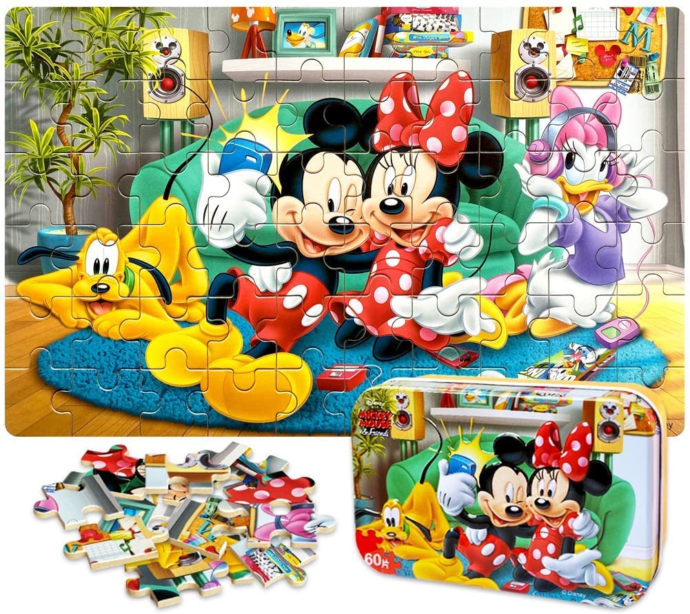 Mickey Mouse Jigsaw Puzzles, 60 Pieces Puzzles for Kids Ages 4-8,Packed in Tin Box,Learning Educational Puzzles for Children Girls and Boys,Pu