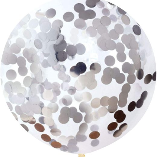 Neo LOONS 36 Inch Giant Confetti Balloons, Silver Latex Confetti Round Balloons for Birthdays Weddings Receptions Festival Party Decoration, Pack of 5