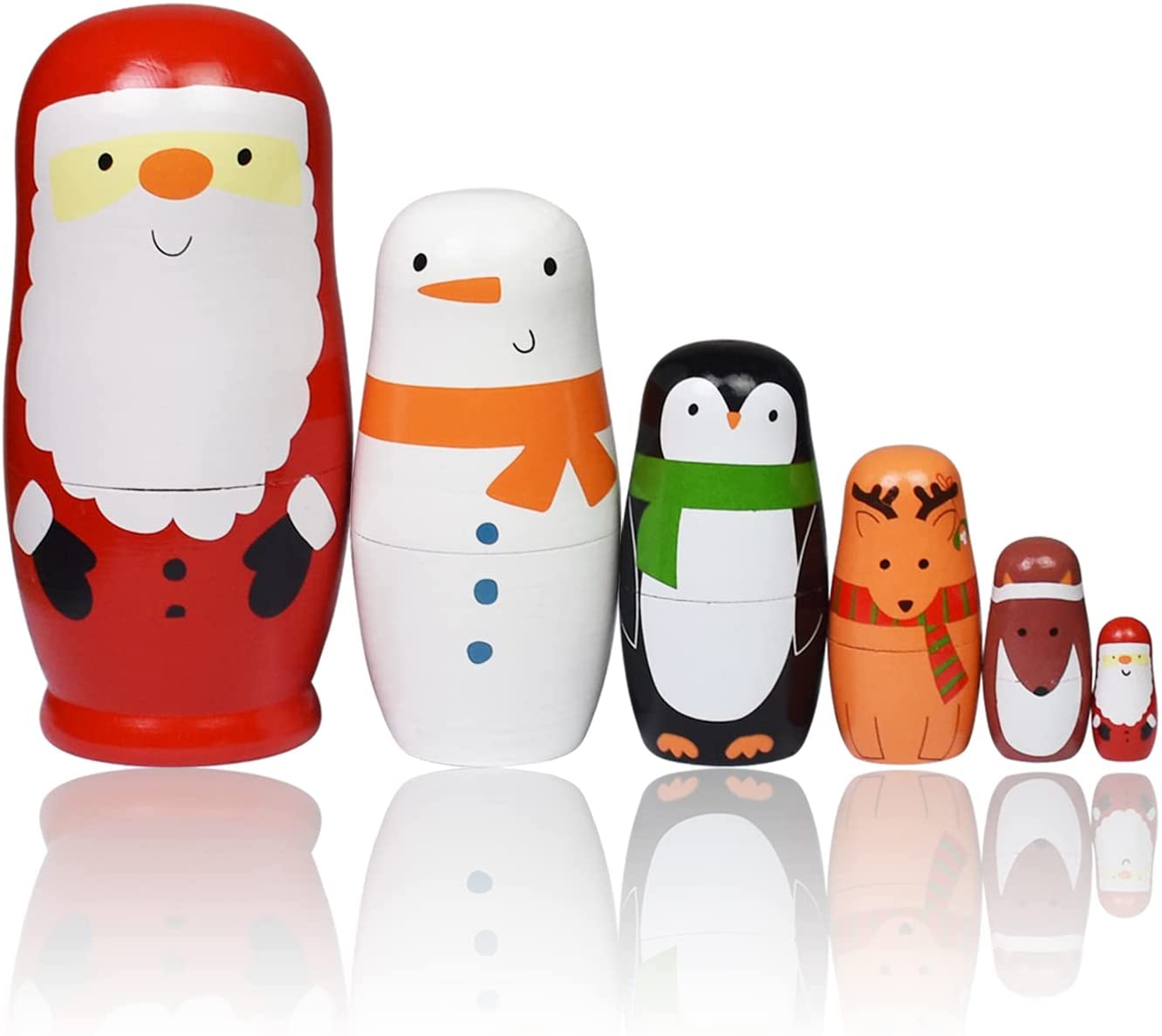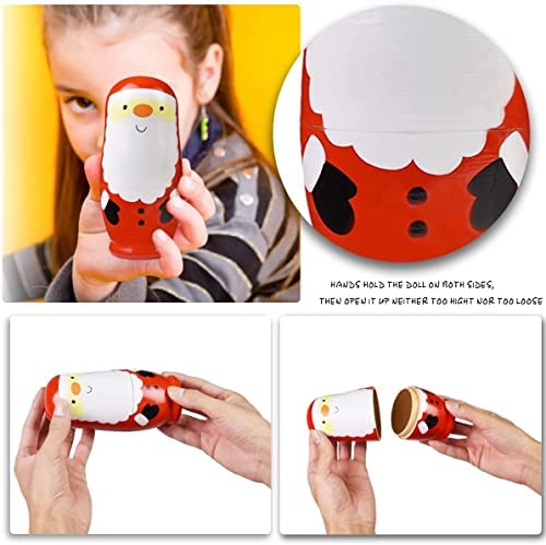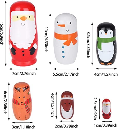 Nesting Dolls Christmas Russian Matryoshka Dolls for Kids Wood Stacking Nested Set 6 Pieces Handmade Toys for Children Christmas Birthday Gift