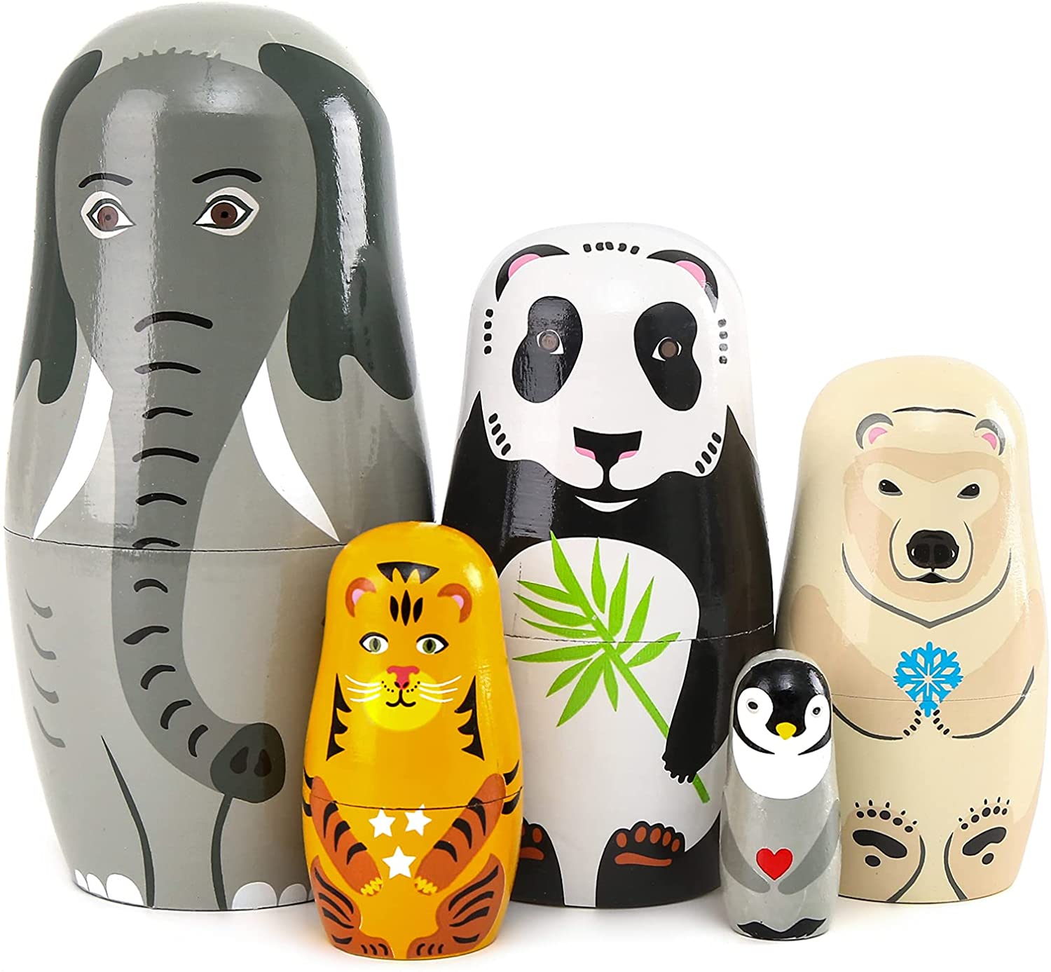 Nesting Dolls Russian Matryoshka Wood Stacking Dolls for Kids Handmade Toys (5.7u2019u2019 2.8u201d 2.8u201d Animals)