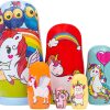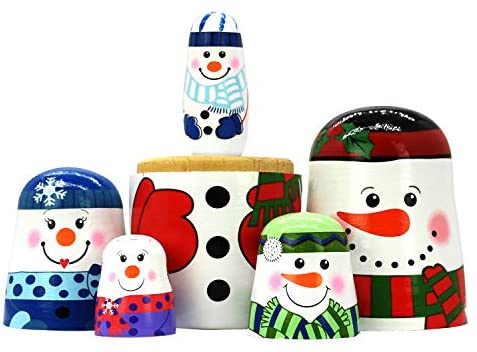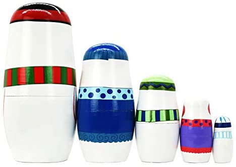 Made of dry basswood ,sturdy ,durable,smooth,light weight. Great Birthday Christmas Gift for little Children or house decoration, fun for animal lovers and fans of arts and crafts. Traditional Russian nesting dolls are colorful decoration items, which can also be used as educational toys HANDMADE these dolls are handcrafted and handpainted, which makes each item unique, you will appreciate small variations on each item AGES 3+, SIZE Largest doll is 5.9 inches (15 cm) tall and 2.8 inches (7 cm) wide SET of 5 dolls