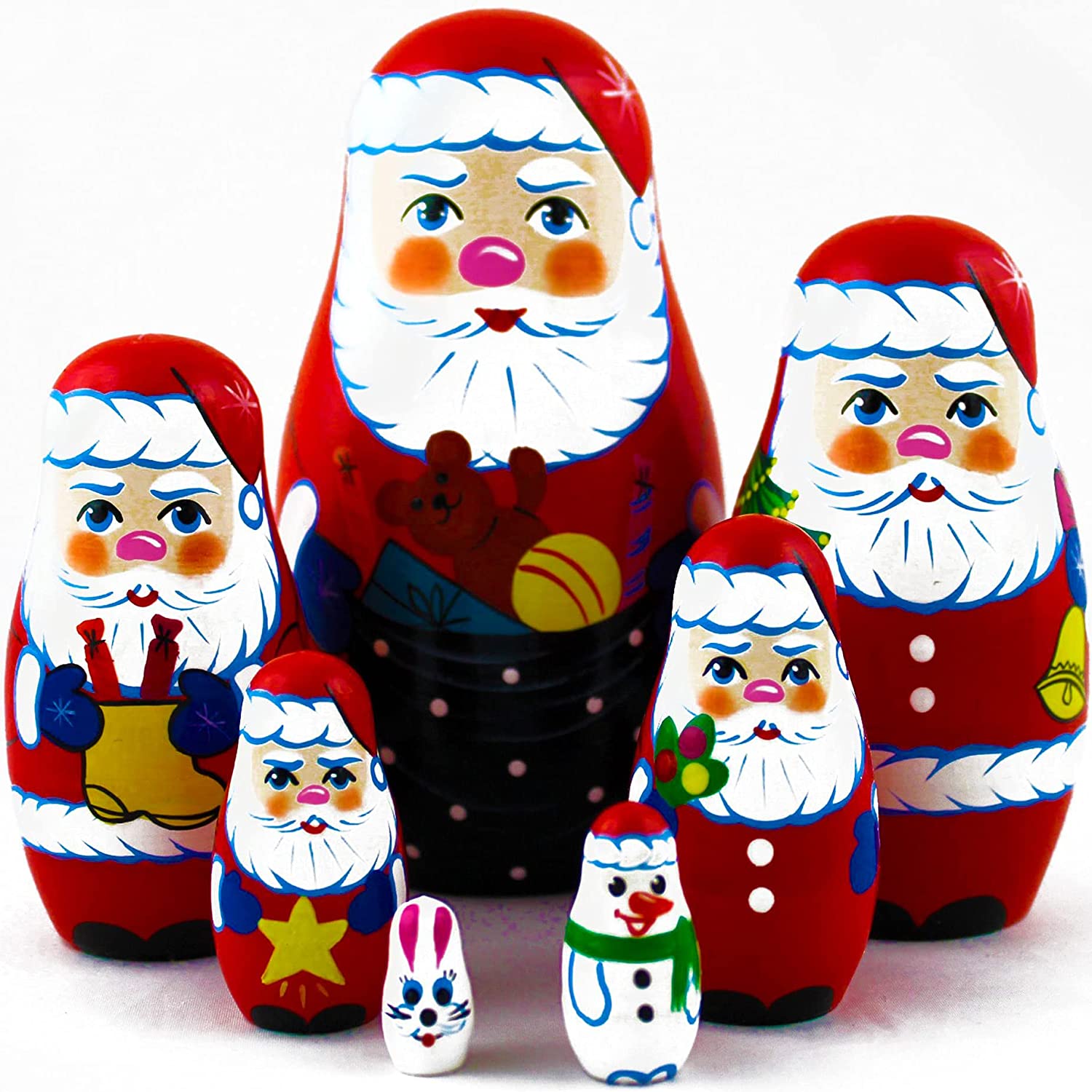EXCELLENT DESIGN: matryoshka nesting dolls by the motives of Russian folk tale The Princess Frog ONLY ECO-FRIENDLY MATERIALS: natural wood, hand painted water-based paints, finished with varnish UNIQUE GIFT FOR EVERYONE: russian dolls are great home decoration and educational toy for kids PERFECT DIMENSIONS: largest doll is 5.3, smallest is 0.8. Set of matryoshka dolls includes 7 pcs AEVVV is proud of high-quality russian matrioskas, if you arent satisfied well refund the purchase