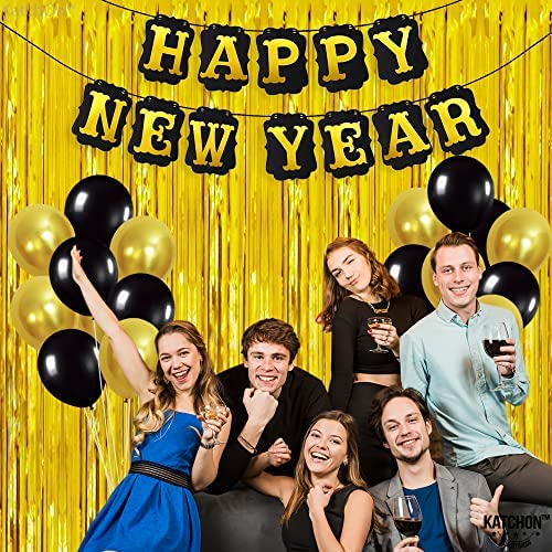 New Years Eve Party Supplies 2022 Kit – No DIY, 10 Feet Happy New Year Banner | Big, 10 Feet Gold Fringe Curtain for New Years Decorations | New Years Backdrop for Happy New Year Decorations 2022