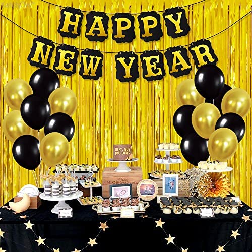 ALL IN ONE COMPLETE HAPPY NEW YEAR DECORATIONS – Wanting to have a shimmering and extra-special gold happy new year decorations 2022 This new years decorations 2022 kit will add a luxurious ambiance to your event. An elegant combination of black and gold happy new year banner with gold fringe curtain and pack of 18 latex balloons perfect for new years backdrop for your indoor and outdoor decorations. 10 FEET HAPPY NEW YEAR BANNER WITH SHINY FOIL GOLD FRINGE CURTAIN – An affordable, complete new years decorations 2022 pack is what you’re looking for Look no more! The happy New Year Banner 2022 is pre-assembled and the large 10 Feet gold foil fringe curtain backdrop will give you a elegant and luxurious effect to your new years eve party supplies 2022. BUY WITH CONFIDENCE l 100% SATISFACTION GUARANTEE : Customer satisfaction is our main objective, so we personally made sure that the materials we used are Grade A Quality. We will make sure that what you saw on the picture is what you will get on your door. If you are not satisfied with our happy new year balloons 2022, we guarantee to give you 100% full money refund for this NYE decorations 2022. Place your order now for new years eve decorations. HIGH QUALITY NYE PARTY FAVORS | STURDY, DURABLE AND REUSABLE – Want to have a New Years Eve party decorations backdrop that lasts long Made from thick card-stock, this black and gold Happy New Years Eve Backdrop have the sturdiness like no other. Happy New Years Banner can be reused for the next year’s event. Easy to attach and detach. happy new year backdrop are made of premium quality latex which is healthy and safe. BEAUTIFUL PERFECT NEW YEARS EVE BACKDROP – This new years eve 2022 decorations is totally picture-perfect décor for New Year. With a beautiful and attractive gold fringe curtain will make your new years eve party decorations 2022 shine and glitter with sophistication. Easy to hang and detach! Glam up your backdrop and centerpiece with this beautiful black & gold happy new year 2022. What are you waiting for Place your order now!