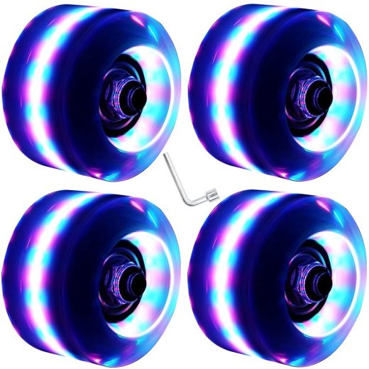 Match your roller skatesThe package contains 4 pieces luminous roller skate wheels, which flash at night; Each wheel comes with 2 pieces 608 bearings and 1 piece roller skate wheel core, and 1 mounting wrench