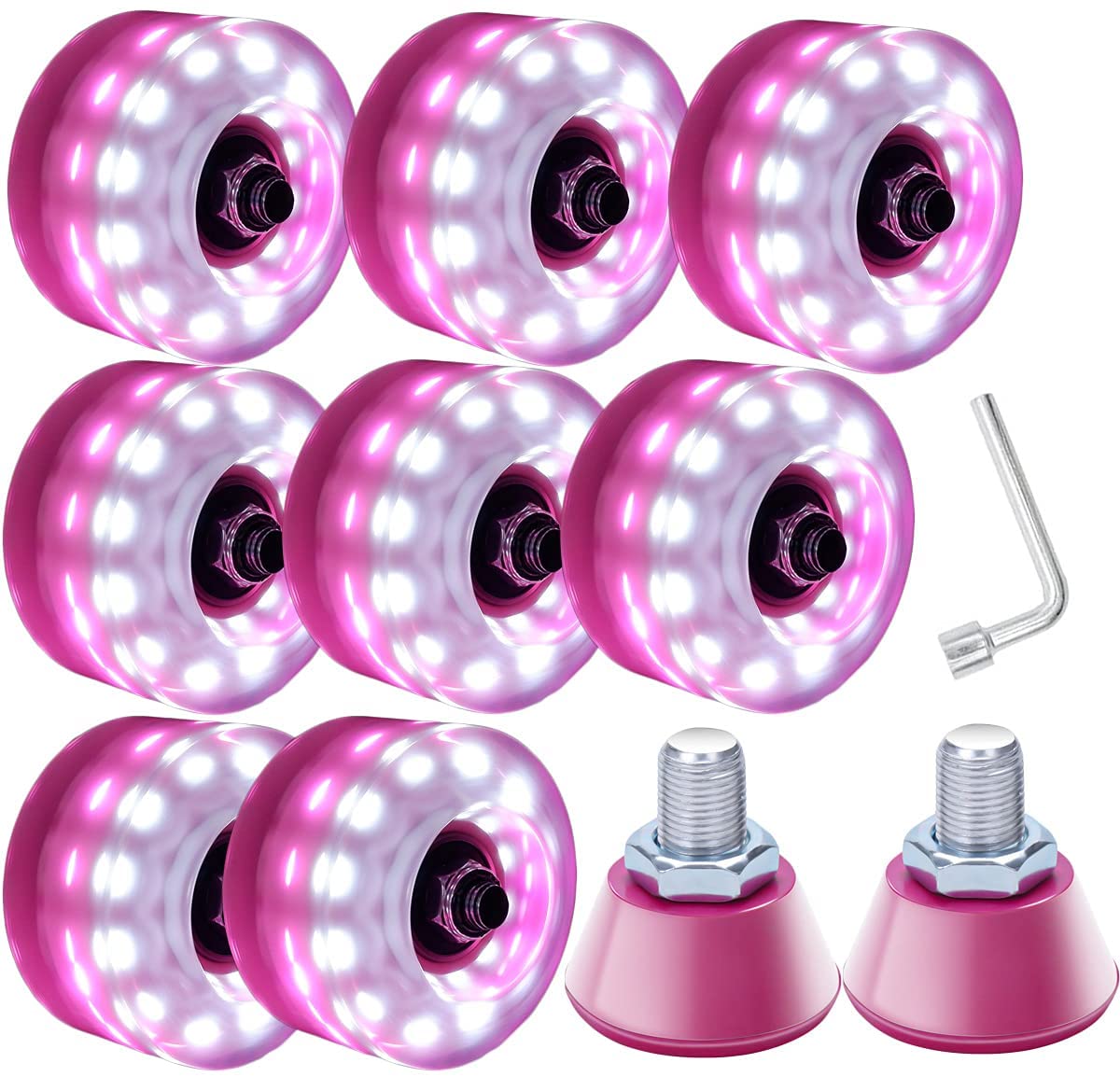 Light Up Quad Roller Skate Wheels (8-Pack) + Adjustable Roller Skates Toe Stoppers (2-pack) Material: Polyurethane polymer synthetic material(PU) W…