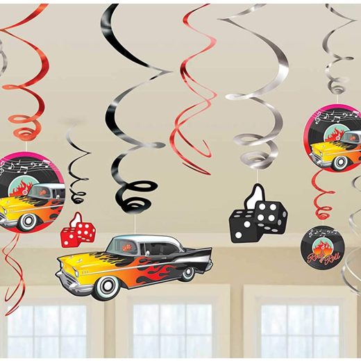Occasion Birthday/Celebration Color 50s Swirl Decorations Included Components Classic 50s Hanging Swirls Decoration Theme Kid/Adult/50s Themed Party Material Paper Unit Count 1.00 each Item Dimensions LxWxH 10 x 9.5 x 0.3 inches Size 12 pieces Amscan CPSIA Cautionary Statement No Warning Applicable