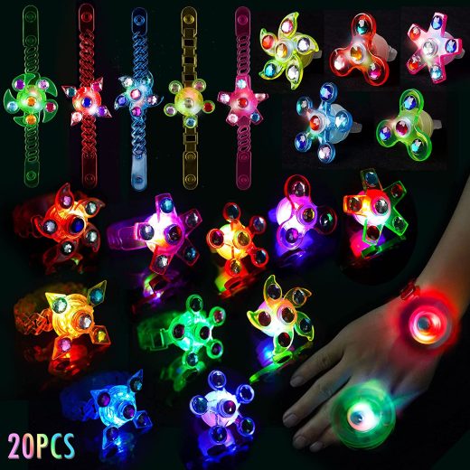NiHome 20PCS LED Light Up Spinner Toy Party Favors for Kids (10 Rings+10 Bracelets) Glow In The Dark Fidget Pack Wristband Halloween Birthday Holid…