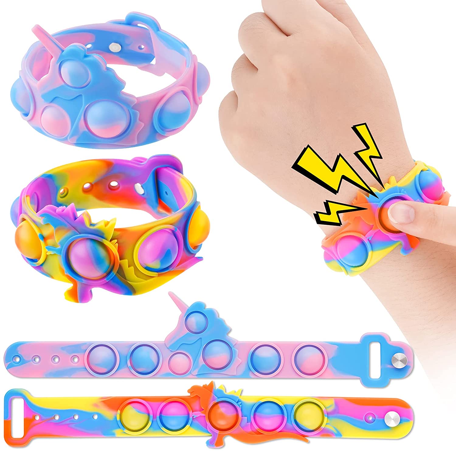NiToy 2-Pack Kids Silicone Push Pop Bubble Wristband Fidget Sensory Toys, Multicolor Bracelet Wearable Stress Reducer Anxiety Relief Bubble Popper Squeeze Fidget Toy (Tie-Dye Colors Unicorn+Dinosaur)