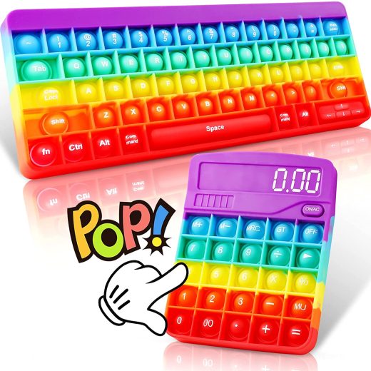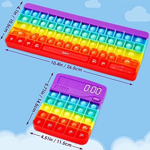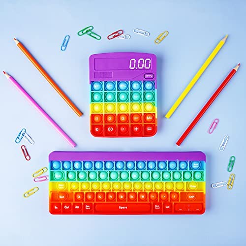 NiToy 2-Pack Silicone Keyboard + Calculator Bubble Push Popper Fidget Sensory Toy Set, Soft Novelty Toy Early Age Learning Stress Reducer Anxiety Relief Squeeze Toys for Kids & Adults (Rainbow Colors)