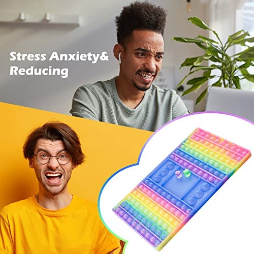 NiToy Glitter Silicone Push Pop Bubble Game Pad+2 Game Dices, Big Size Gradient Rainbow Multi-Color Interactive Fidget Toy Board Sensory Popper Stress Relief Anxiety Reduce Squeeze Toy for Kids Adults