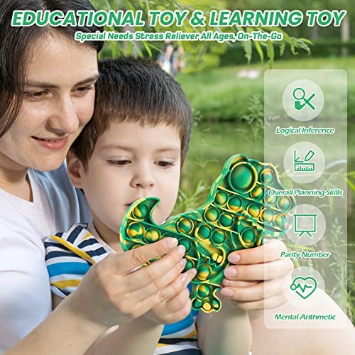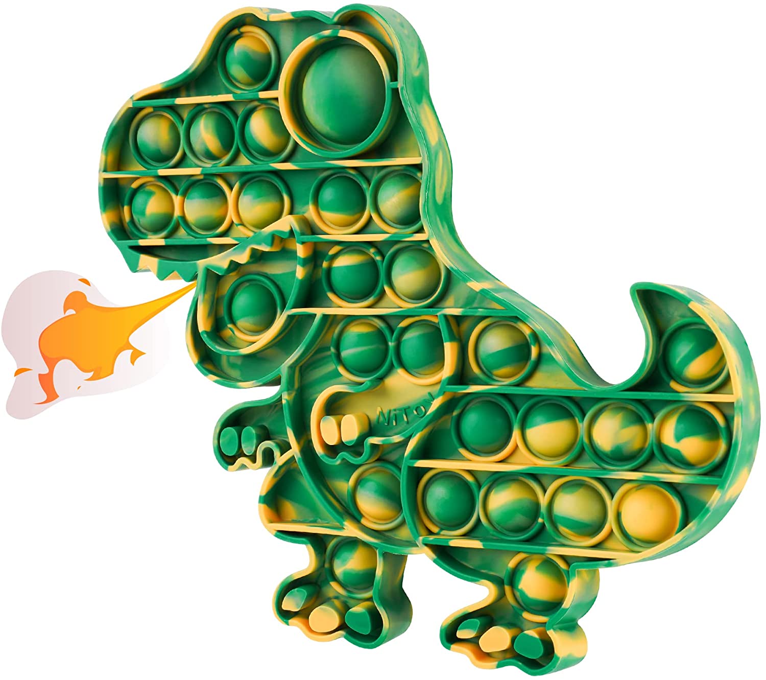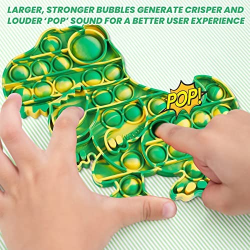 NiToy Push Pop Bubble Fidget Sensory Toy Large Size Silicone T-Rex Dinosaur, Multi-Color Stress Reducer Anxiety Reliever Bubble Popper Board Fidget Squeeze Toy for Kids & Adults (Tie-Dye Green/Yellow)