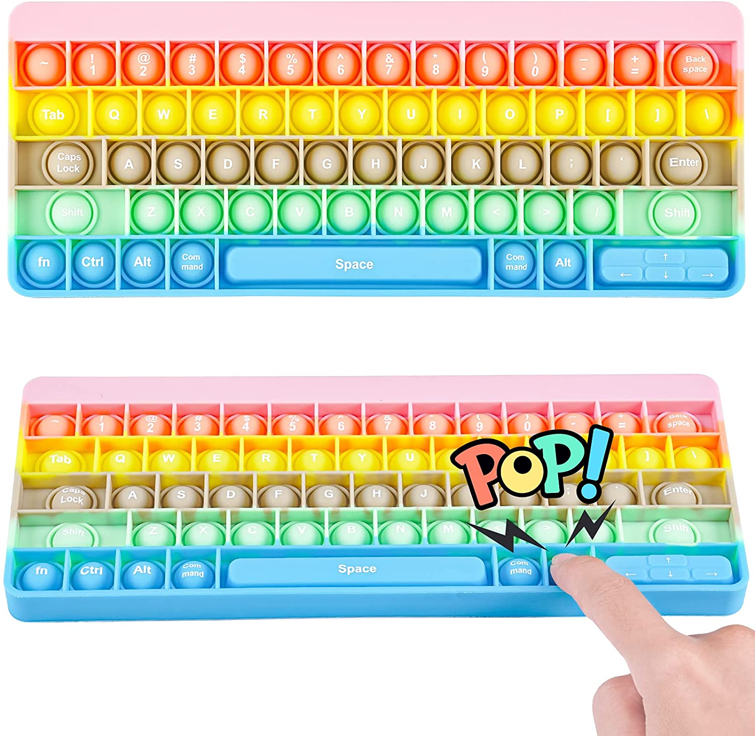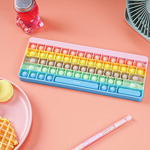 NiToy Soft Silicone Keyboard with Letters Push Pop Bubble Fidget Sensory Toy, Big Size 10.6u201dx4.3u201d Novelty Toy Stress Reducer Anxiety Relief Popper Squeeze Toy for Kids & Adults (Rainbow Candy Colors)