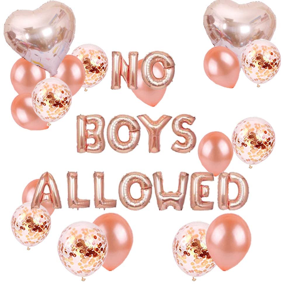 NO BOYS ALLOWED Balloons Decorating Kits for Girls Bachelorette Party Decorations Rose Gold Balloons Banner Pajamas Party Supplies Favors Pack