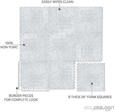 100% NON-TOXIC – Made with certified non-toxic EVA foam, our play mats are completely BPA, phthalate, lead and PVC free. EXTRA THICK, EXTRA LARGE PIECES – 5/8 inch thick tiles provide extra comfort and shock absorption. Large 24in x 24in pieces cover more floor. STYLISH DESIGN – This neutral patterned gray foam mat provides a safe and inviting surface for your little one while enhancing the look of your playroom, exercise room, daycare or school. BUILT TO LAST – Made with extra-durable, water-resistant foam, these kids play mat pieces will last you and your family for years. LIFETIME REPLACEMENT WARRANTY – Play Platoon stands behind all of its foam puzzle floor mats 100%. Register online for a free lifetime warranty.