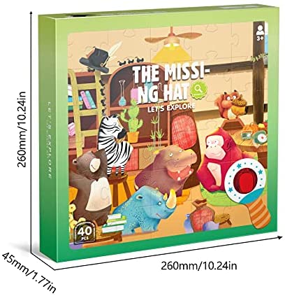 NOOLY 40 Pieces Animal Floor Puzzles for Kids,Perspective Design Puzzles Learning Educational Puzzles for Boys Girls Kids Gift GSPT-01 (The Missing Hat)