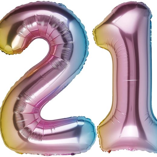 Number Balloon 21 Rainbow Big Giant Jumbo Birthday Party Decorations Foil Mylar Helium Numbers Balloons 21th Anniversary Event ,40 Inch