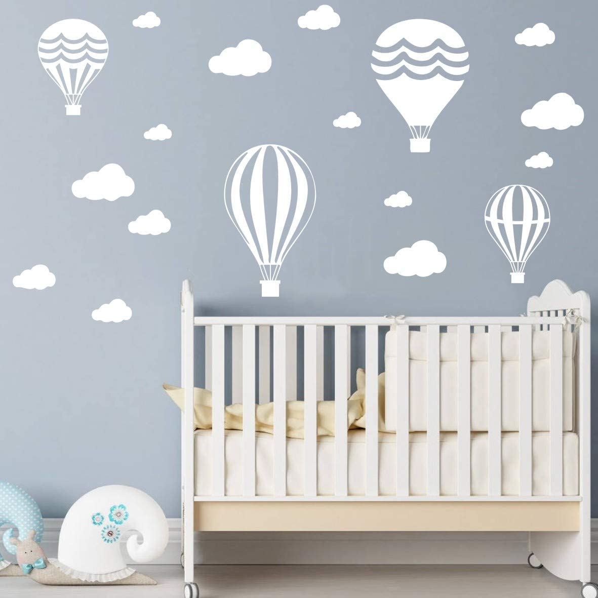 Nursery Room Wall Sticker Clouds and Air Ballon Decoration Sticker Wall Art Sticker for Children Kids Bedroom White Clouds Decoration Mural (White 40x90cm)