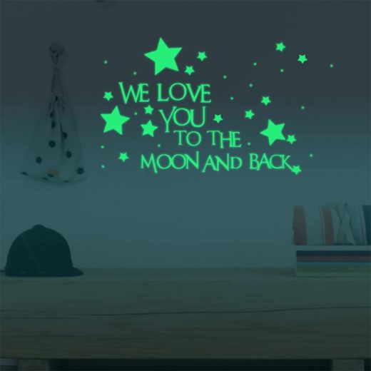 Be the first to review “Nursery Wall Decals Glowing Words Stickers – WE Love You to The Moon and Back – Words Glow in The Dark with Stars Around Wallpaper for Kids Bedroom Ceiling” Cancel reply