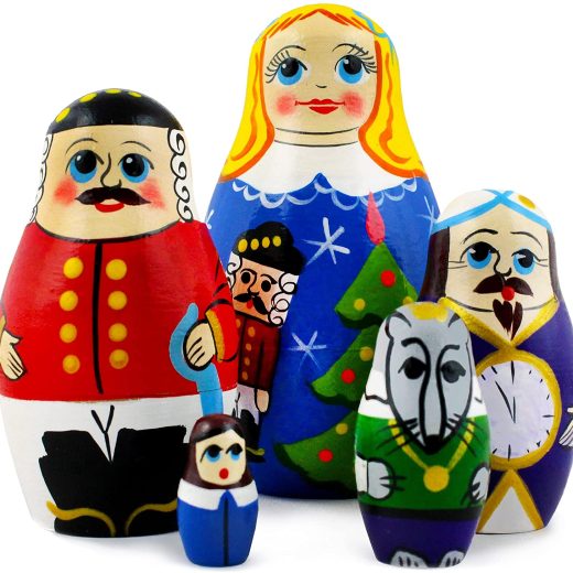 Nutcracker Christmas Toy Gifts Russian Nesting Dolls for Kids – Wooden Nutcracker Matryoshka Set 5 Pieces Hand Made in Russia – Munecas Rusas De Madera