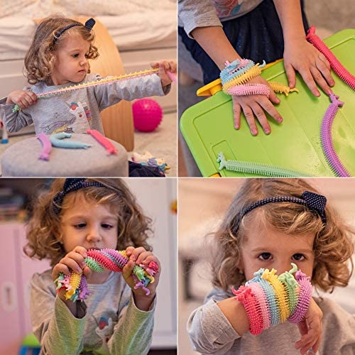 ULTRA FUN FIDGET TOY FOR KIDS – bright coloured unicorn shaped strings are PLEASANT to STRETCH, FIDGET or even turn them to WEARABLE BRACELETS; the kids will bring them anywhere, from the couch while watching TV to the car; STRESS RELIEF FOR ADULTS – no joke, give an adult a fidget string and transform him into a child who wont put his toy down and keep running his fingers along the fantastic texture; NOT STICKY – can be rinsed with soap and water and do not catch dirt easily; PERFECT for ADHD, Autism, Anxiety or Stress Relief on the go; Thanks to their UNEVEN & SLIGHTLY TICKLING TEXTURE the unicorn strings have a soothing effect capturing your attention and helping you calm down and regain focus in the most stressful situations. Take your UNICORN FRIENDS everywhere with you, to the office, to school or on a quick drive to the store; also used for GROUP THERAPY & ADD where multiple participants connect them together; recommended for learning fine motor skills; SUPER SAFE & HIGH QUALITY; The colorful unicorn strings are built with the highest quality BPA & LEAD FREE HYPERALLERGENIC RUBBER to the highest quality standards you should expect and are designed to withstand a ton of fidgeting, stretching, pulling & knotting thanks to its DURABLE MATERIAL; your little wont be able to tear it, we promise!; additionally, the soft rubber makes the strings SAFE & GENTLE ON THE SKIN even when snapped back really hard; recommended for children 3 years and up; AMAZING GIFT CHOICE; Christmas, stocking stuffers or a surprise last minute birthday gift for kids, tweens or grownups Spread the joy and share these popular fidgets with your loved ones; Make someones day with these stress relief good luck charms! Fidget Strings make top notch party favor goody bags, pinata fillers, unique white elephant gifts, easter egg, secret santa & hottest teenage basket stuffings for boys and girls – WHOM WOULD YOU GIFT THEM TO NO REASON TO STRESS: 1 year manufacturer backed warranty for these amazing classroom fidgets; Because we trust our products and we know exactly that they are of the highest quality, we offer all our clients a risk free policy. If something ever happens with the best selling unicorn strings, we will gladly replace them immediately;