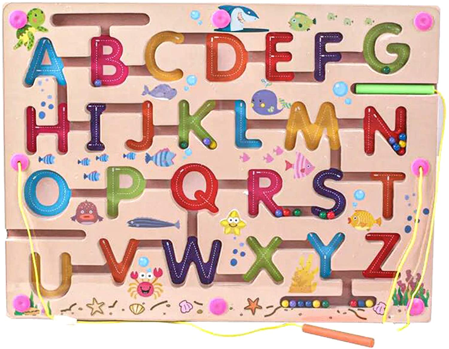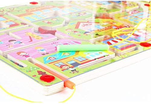 O-Toys Kids Maze Wooden Puzzle Activity Magnet Toys Beads Board Game Play Set for Boys Girls Learning Education Toy with Magnetic Wand for Toddlers Infants Preschool Children