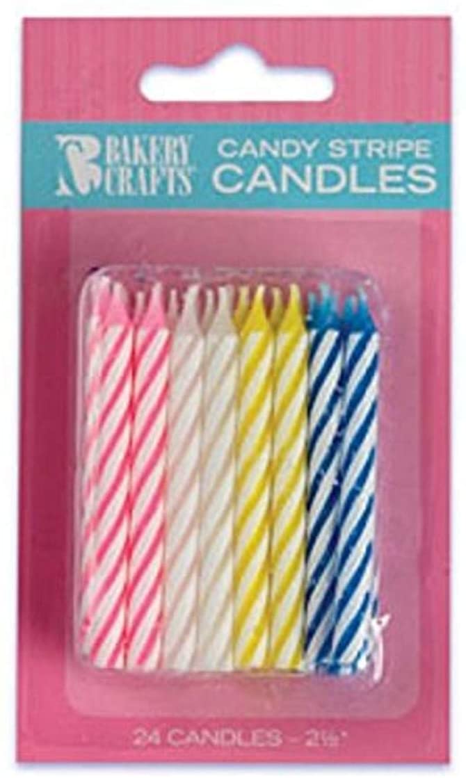Oasis Supply Candy Stripe Wax Birthday Candles for Cake Decoration, 2.5 inch, 24 Pack